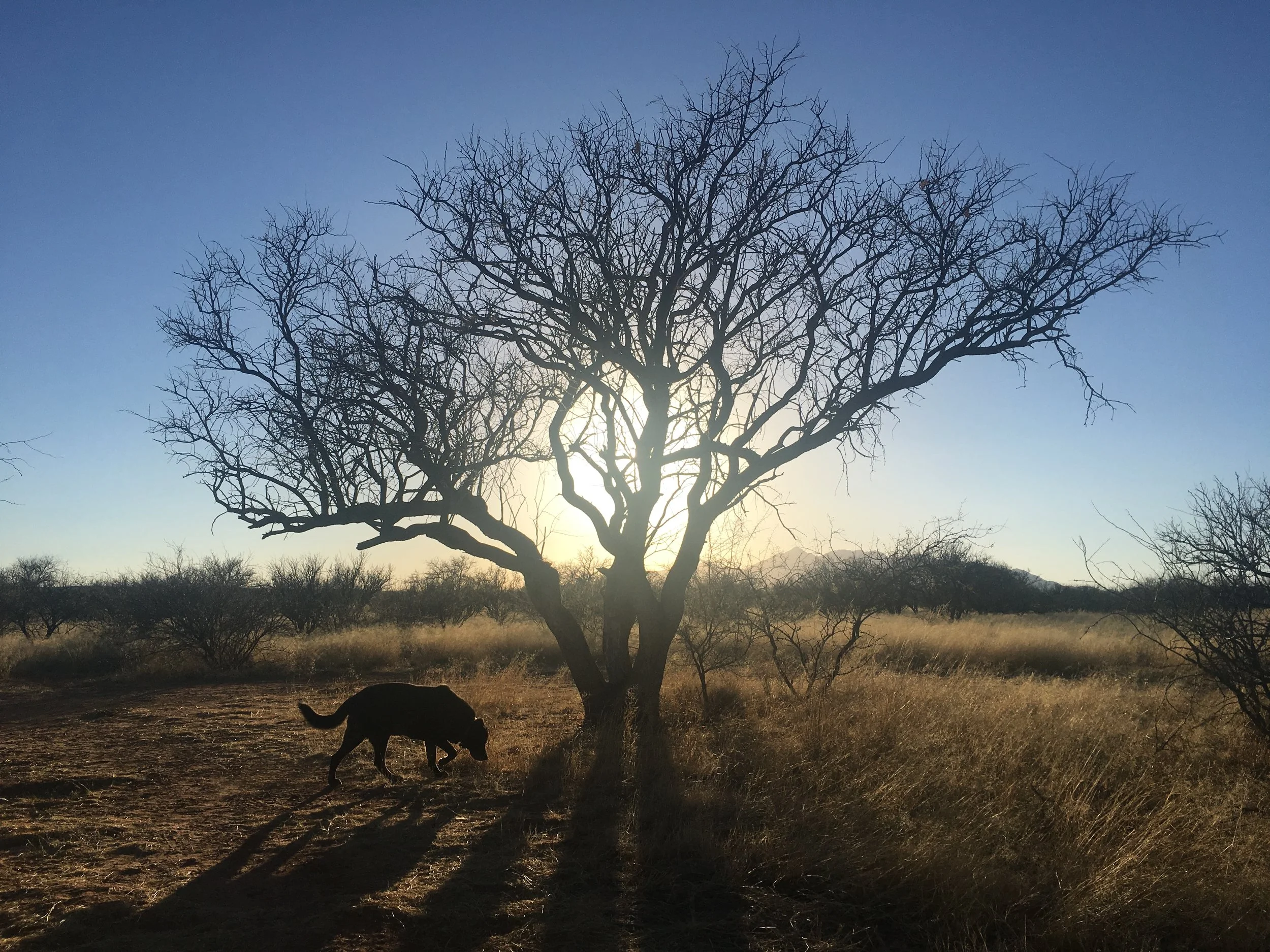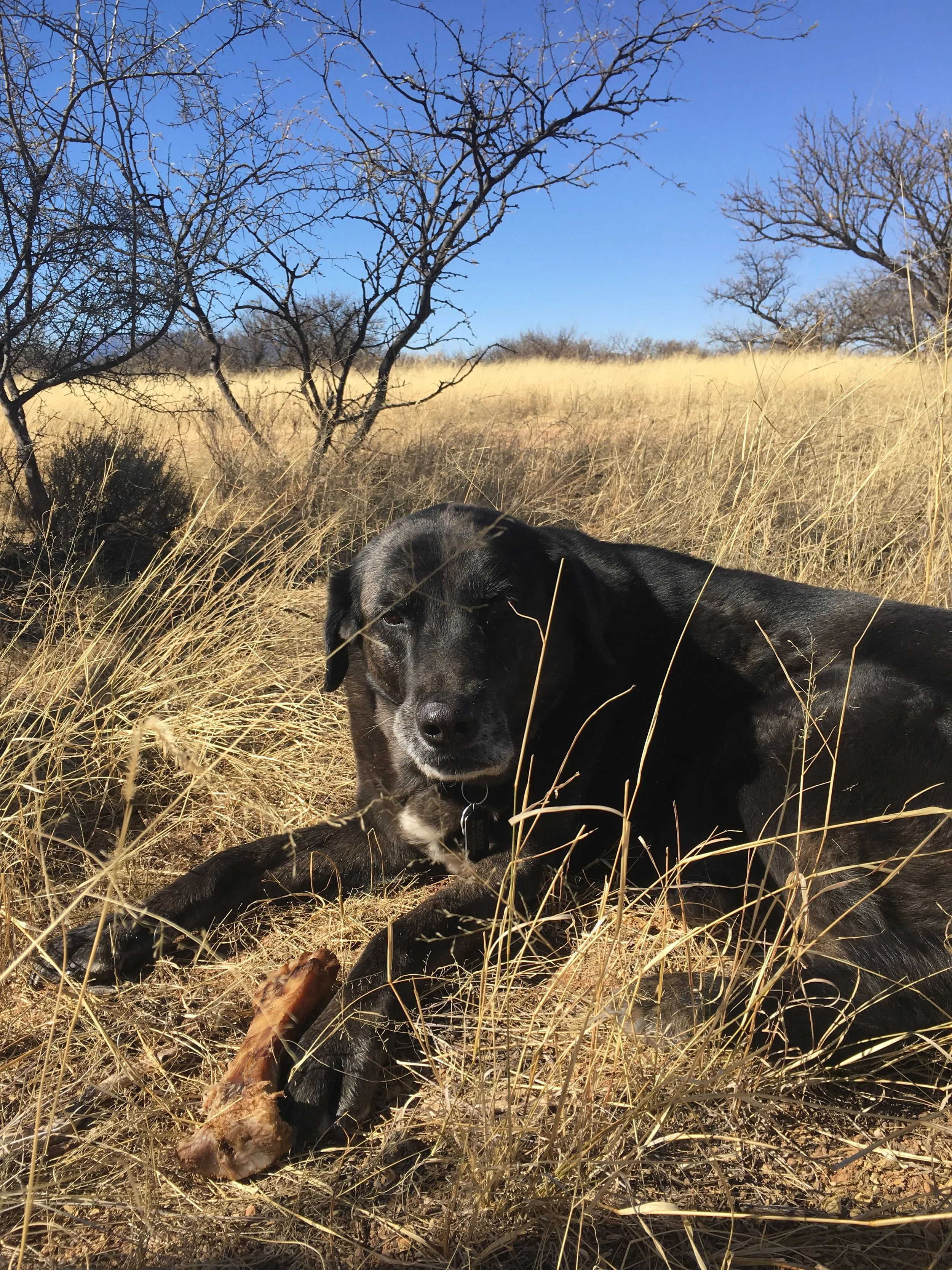Scout in his natural habitat. King of the Serengeti. Or rather cienega. He found a bone and did not want to give up his prize.