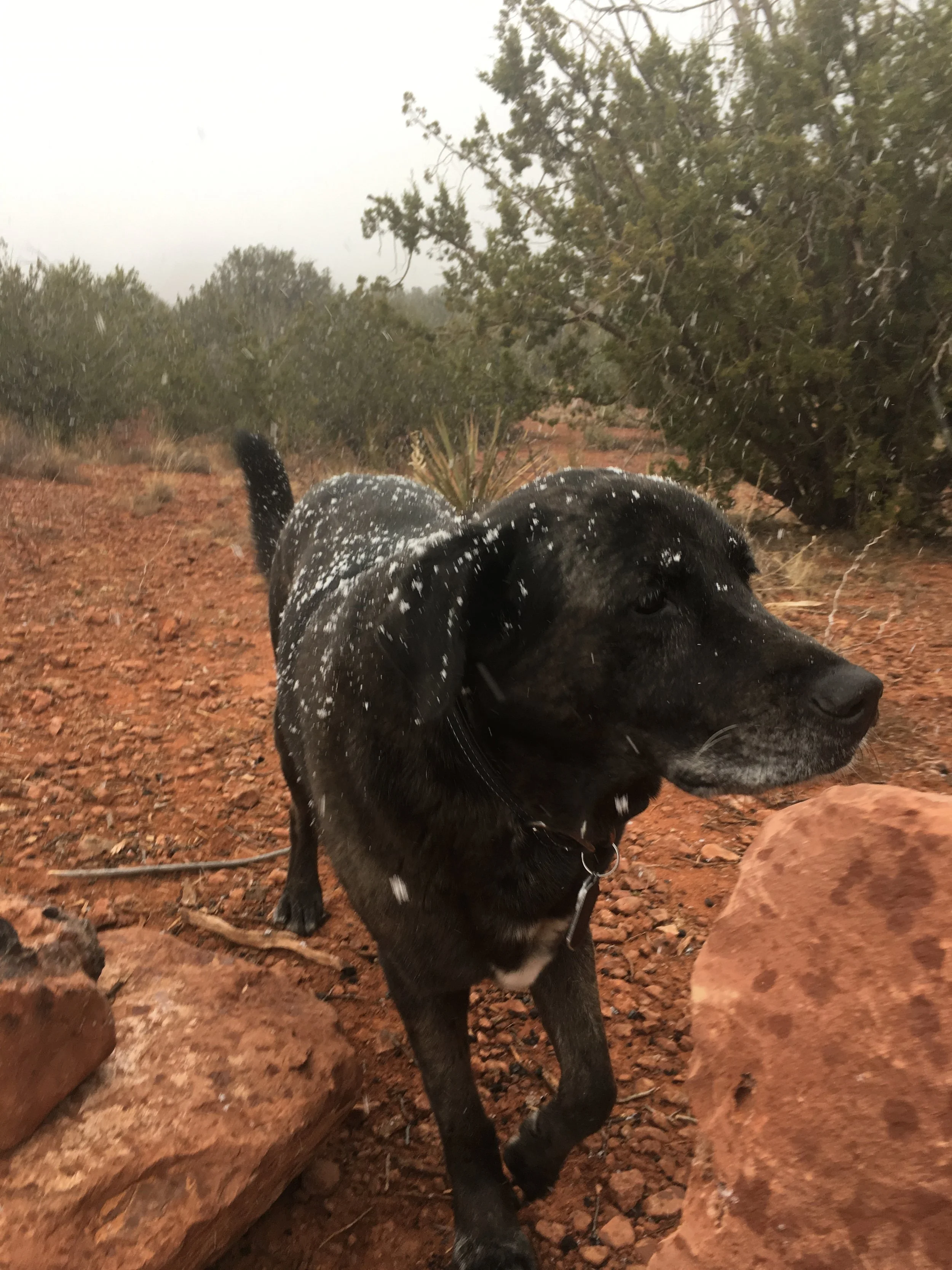 Drove into a little snowstorm on our way up to Sedona. Never seen snow in Sedona until now, and it's every bit as beautiful as I thought it would be. The forecast says this is the only day we're going to get snow while we're here, so I'm savoring it while I can. Looking forward to a long, snowy walk through the red rocks with this mutt tonight, then a cozy night in front of the fire, culling a few wedding photos and relaxing.